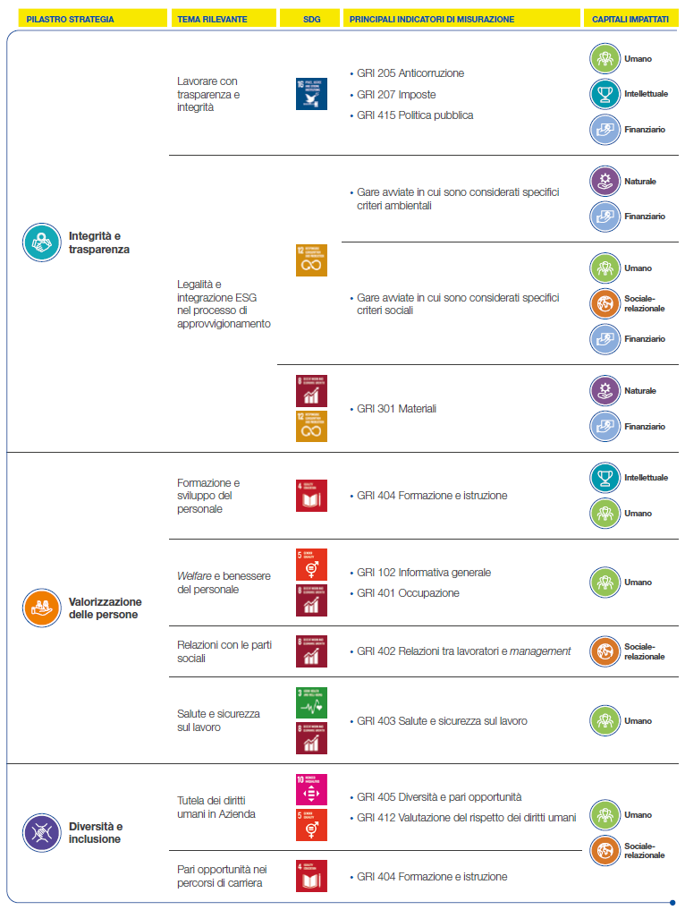 | CAPITALE | DESCRIZIONE | INDICATORI DI MISURAZIONE | RIFERIMENTO AI PARAGRAFI DEL BILANCIO |