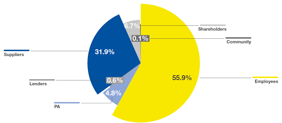 The economic value created in 2020 amounts to over € 10.6 billion, of which the 88% distributed to stakeholders